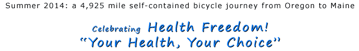 As is typical of self-contained bike touring, most nights one will camp in beautiful state or national parks, or perhaps National Forests or BLM land. Many have showers, drinking water, flush toilets, picnic tables, a fire ring, bubbling streams, gorgeous views... Some campgrounds are a little more primitive, but that just adds to the experience. Additionally, some nights may even be "stealth camping", out of sight on National Forest lands. The price is right and the solitude is most rewarding. I usually like to plan overnight stays well in advance, with "bail-out" locations noted for added flexibility. While I usually like to have a daily itinerary, options for spontaneity and alternate routes are also built in. That's part of the attraction of traveling like this. Most days we will spend from 5 to maybe 8 hours (or sometimes more) cycling through the grandest of scenery. However, I like to enjoy one day per week as a rest day, as well as other off-bike days for enjoying the National Parks, doing some hiking, enjoying points of interst, and just plain relaxing. One thing to keep in mind is, the trip is your own, to do with as you want (or need). Go at your pace. Take the route that fulfills your needs. Take as much or as little time off the bike as you want. And remember, you are not in a race! Don't pressure yourself with getting to a daily destination. It is the journey itself—the scenery, wildlife, people that you meet, the kindnesses offered, the small towns, conversations, the quietude and peace—that flavor a tour (as in life). As I try to reflect on my earlier tours of the 1980's, they are all a blur as I hurried along each day in an effort to get the the predetermined destination. I've learned to savor the journey. Experiencing each day along the journey is what makes bicycle touring so fulfilling (to me).
