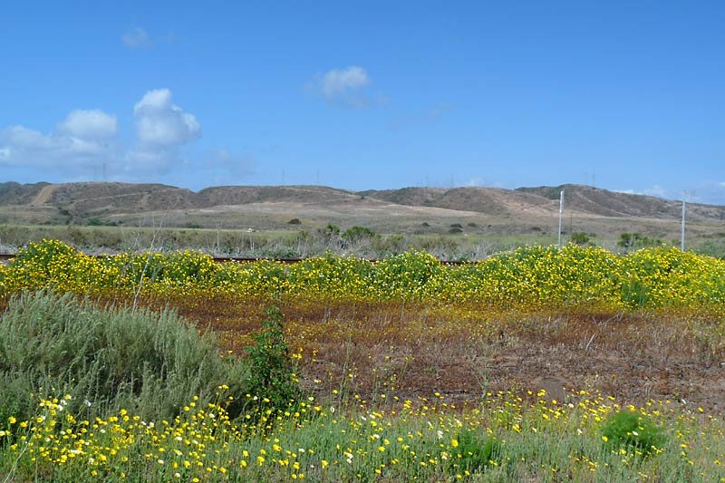 12 April: I was actually making better time than the motorized traffic. You can see the northern reaches of Santa Monica and LA. The Sunday traffic remained bumper-to-bumper all the way to Santa Monica.