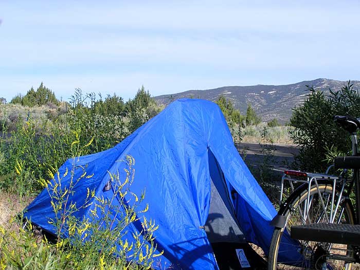 June 2: The temperature was actually forecast to reach 100+ degrees, but there was a welcomed cloud-cover shielding the sun's rays and offering relief from what could have been a terrible scorcher. The head winds, on the other hand, were fierce making for an exhausting day. Hiway 93 runs south along the foot of the Egan range of mountains. Along the road were forests of pinon pine and scrub oak, as well as another infestation of Mormon Crickets.