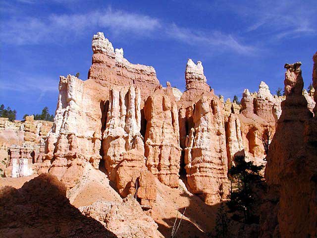 June 11: After finally leaving Zion park and my kind tunnel transporters,I turned north on Hiway 89 and headed for Bryce Canyon, some 85 miles from Zion. The elevation at Zion was around 3700' and at Bryce it ranges from 8000' to over 9100', so I knew I would be climbing up hill a lot today. Long Valley Junction lies at the top of one long ascent at 7500' and is just about at the halfway point to Bryce. The heat and wind continued to let their presence be known. I was amazed at just how green and lush the valleys were below as the river thread its way thru with life-giving water. Turning east at Hiway 12 I cycled up thru colorful Red Canyon and the remaining 18 miles to Bryce Canyon National Park. It had been a long, but wonderfully fulfilling day. I can feel myself getting stronger pedaling this heavy load thru canyons and over summits everyday. Oh how wonderfully and marvelously we are made! This is a terrible picture (white balance again), but the Red Canyon bike path enroute to Bryce Canyon National Park was tremendous. The scenery was awesome!